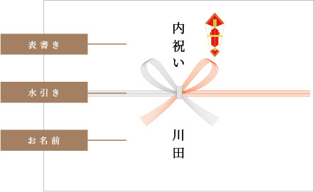 お祝いをいただいた方へのお返しは『内祝い』と記載します。